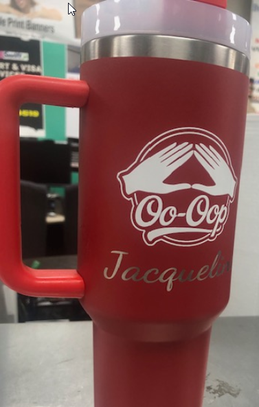 Engraving on powder coated 40 oz Tumbler