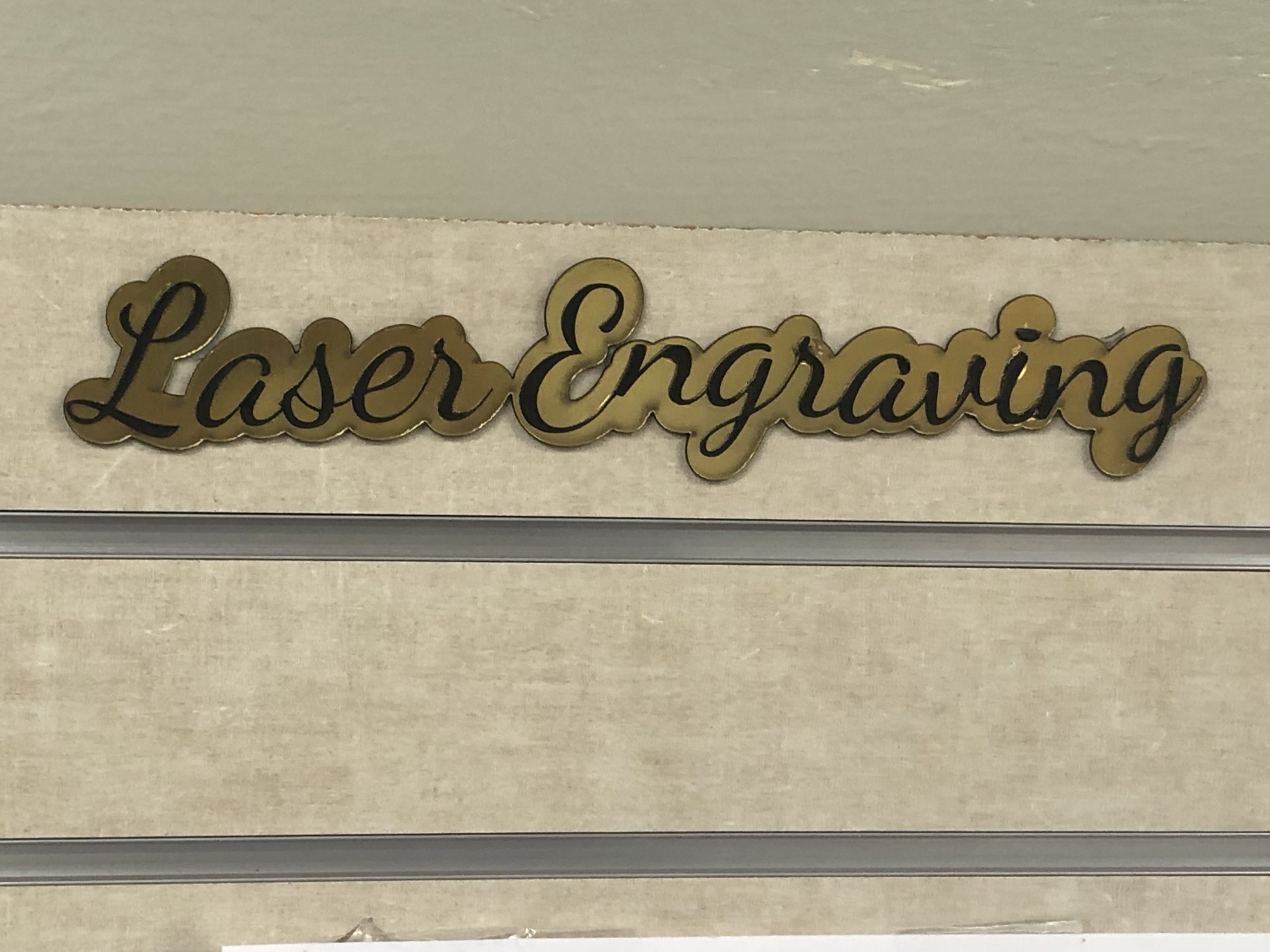 Tow-tone Laser signs for personal and business use are custom created in Sugar Land at the Business Mail Boutique location in Sugar Land Texas. Laser cut signs are available in various materials such as acrylic, wood, PVC, metal, and glass. Custom engraving is also available and can be completed in the same business day.Â